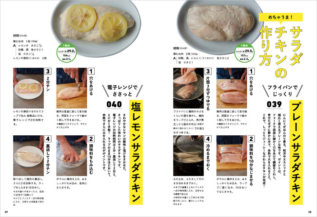 2.大ブームのサラダチキンも、レンチン&フライパンレシピの両方で紹介。フレーバーも、和洋中エスニックとバラエティ豊かに!
