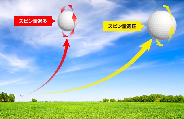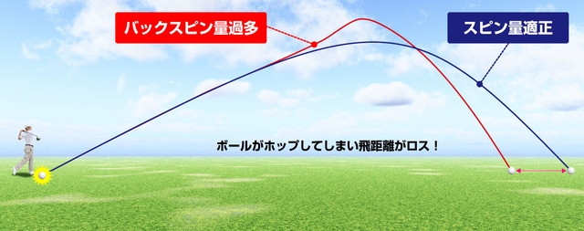 バックッスピンが多いとボールがホップしてしまい、アゲインストにも弱く飛距離をロスする原因となります!