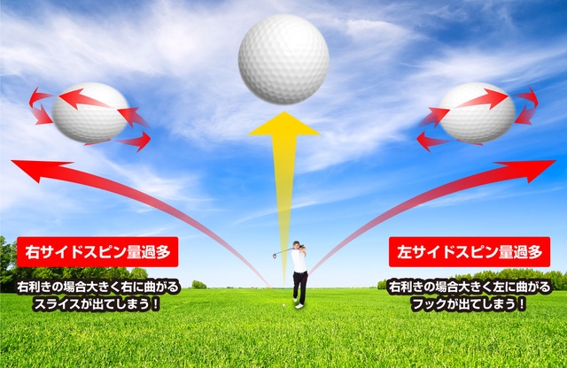 強い横回転がボールにかかるとスライスやフックの原因となり飛距離がロスしてしまうばかりか、最悪の場合OBになってしまう可能性が高くなります!