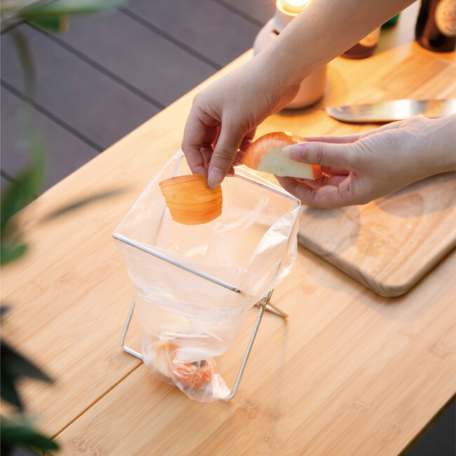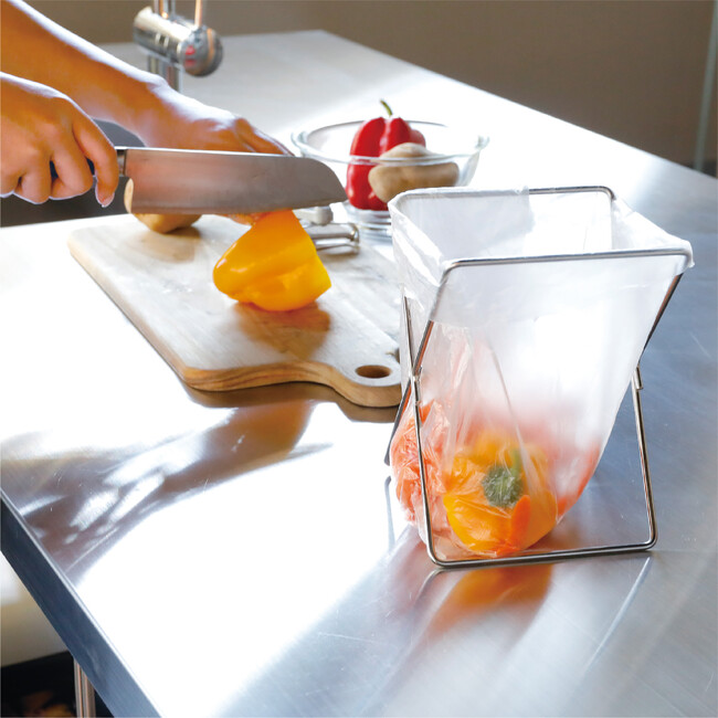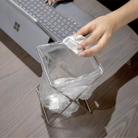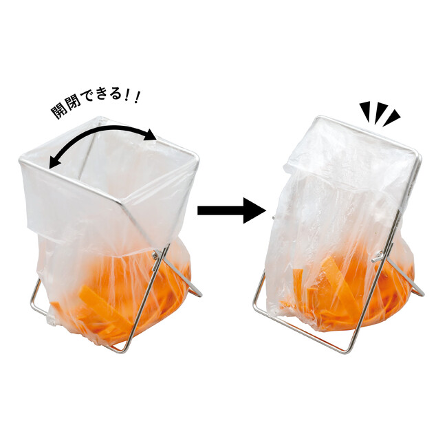 ポリ袋をセットするだけで、キッチンのゴミを簡単にまとめられる!キッチン以外にも、さまざま場所で使える簡易ゴミ箱。