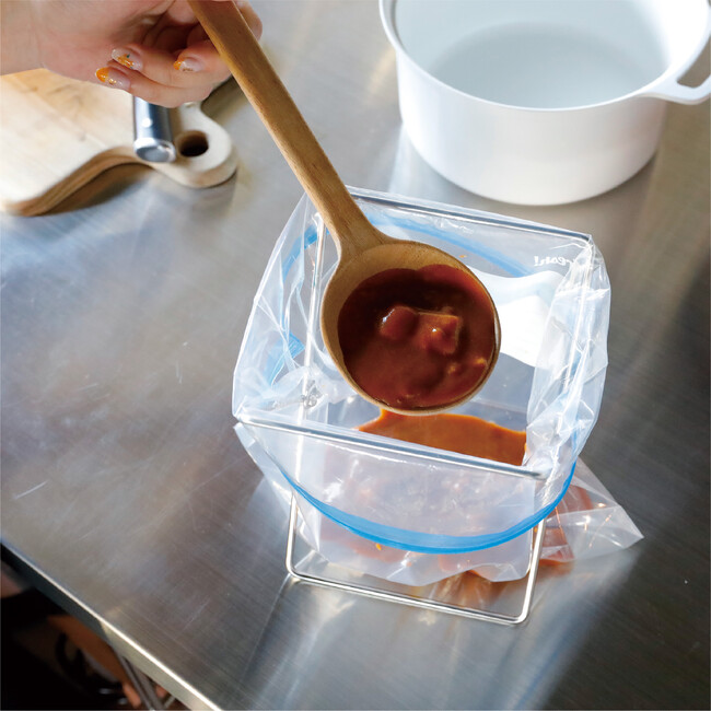 ポリ袋だけでなく、食品の保存用袋なども掛けられます。