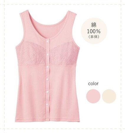 株式会社セシール(本社:東京都新宿区)は、『前開きソフトカップ付きノースリーブ(綿100%)』を6月30日より販売開始しました。フロントがボタンで全開できるので、汗をかいても着脱しやすく快適です。