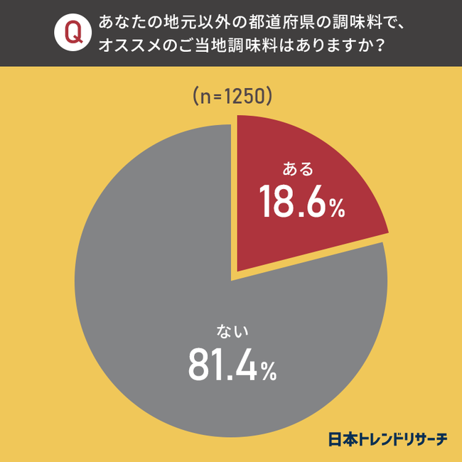 18.6%の方が、自身の地元以外のおすすめご当地調味料が「ある」ようです。