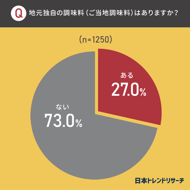 27.0%の方が、地元独自のご当地調味料が「ある」と認識しているようです。