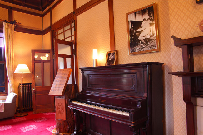 当日はプロのピアニストによるピアノ演奏に加え、バイオリン愛好家としても有名な博士にちなんで、ピアノとバイオリンの二重奏もございます。さらに、当館が所蔵するもう一台のピアノ、100 年前に製造されたスタインウェイ社製のグランドピアノとの音色の聴き比べもお楽しみいただけます。