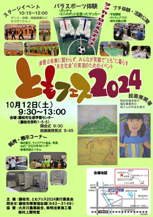 交流体験を通して障害や障害者についての理解促進を図り、「みんなが笑顔で支え合う共生社会の実現」を目指すため、「ともフェス2024」を開催します。