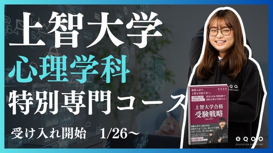 上智大学心理学科の驚異的な合格率を誇るEQAOから、心理学科専門コースをリリース!現役の上智大生講師のマンツーマン授業を受けられるEQAOで早めの対策を始めましょう。定員に達し次第、受付を終了します。