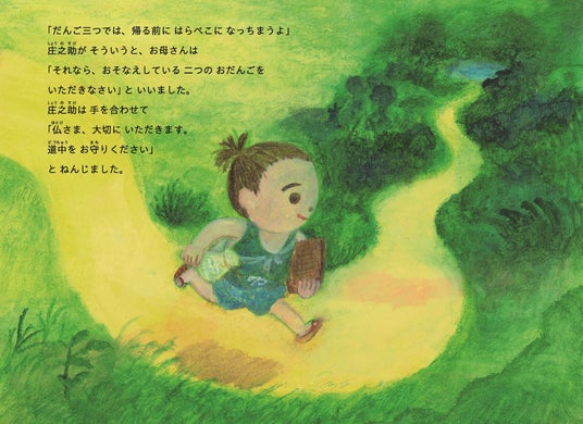 ある日、庄之助は5つのおだんごをお弁当に持って、丸池にしじみ取りに出かけます。