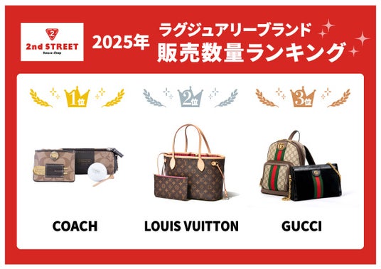 株式会社ゲオホールディングス(本社:愛知県名古屋市中区、代表取締役社長執行役員:遠藤結蔵)のグループ会社である株式会社セカンドストリート(本社:愛知県名古屋市中区、代表取締役社長:一戸綱樹)は、2025年1月1日から2025年11月15日までの期間、売上構成比が特に大きい衣料・服飾品のカジュアル・ラグジュアリーブランドを対象に、全国約900店舗における販売数量を集計した『年間ランキング』を発表します。