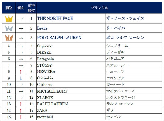 「THE NORTH FACE」と「COACH」が圧倒的人気で9年連続1位を獲得