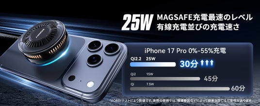 ■Qi2.2正規認証取得:最大25W急速ワイヤレス充電、WPC認証を取得した、安心・高性能のQi2.2対応ワイヤレス充電器で、次世代の充電体験を提供します。