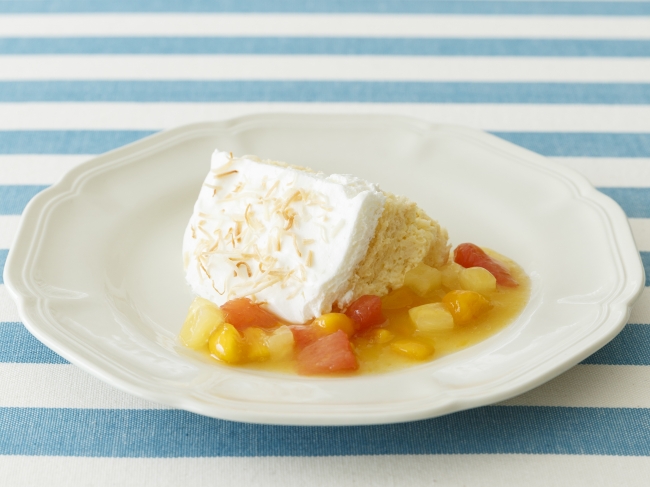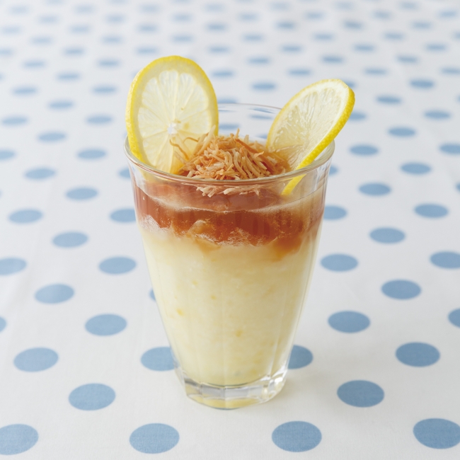今年も新作のフローズンドリンクが、全国のアフタヌーンティー・ティールームに登場します。マンゴーとパイナップルのハーモニーが愉しめる「マンゴーとパイナップルのフローズン」は、濃厚な味わいのマンゴーソースを凍らせたパイナップルと一緒にミキシングし、とろりとしたマンゴー果肉とぷるんとした食感の杏仁プリンをトッピングしたフローズンドリンクです。トロピカルフルーツを代表するマンゴーとパイナップルに、杏仁プリンを合わせることでデザートのような満足感とさっぱりとした美味しさに仕上げています。また、レモンの爽やかな味わいが愉しめる「ハニーレモンフローズン」には、アクセントとして香ばしいココナッツとさっぱりとした味わいのティーゼリーをトッピングしました。夏限定の「トロピカルフルーツのショートケーキ」と合わせて、爽やかな夏のティータイムをお愉しみください。