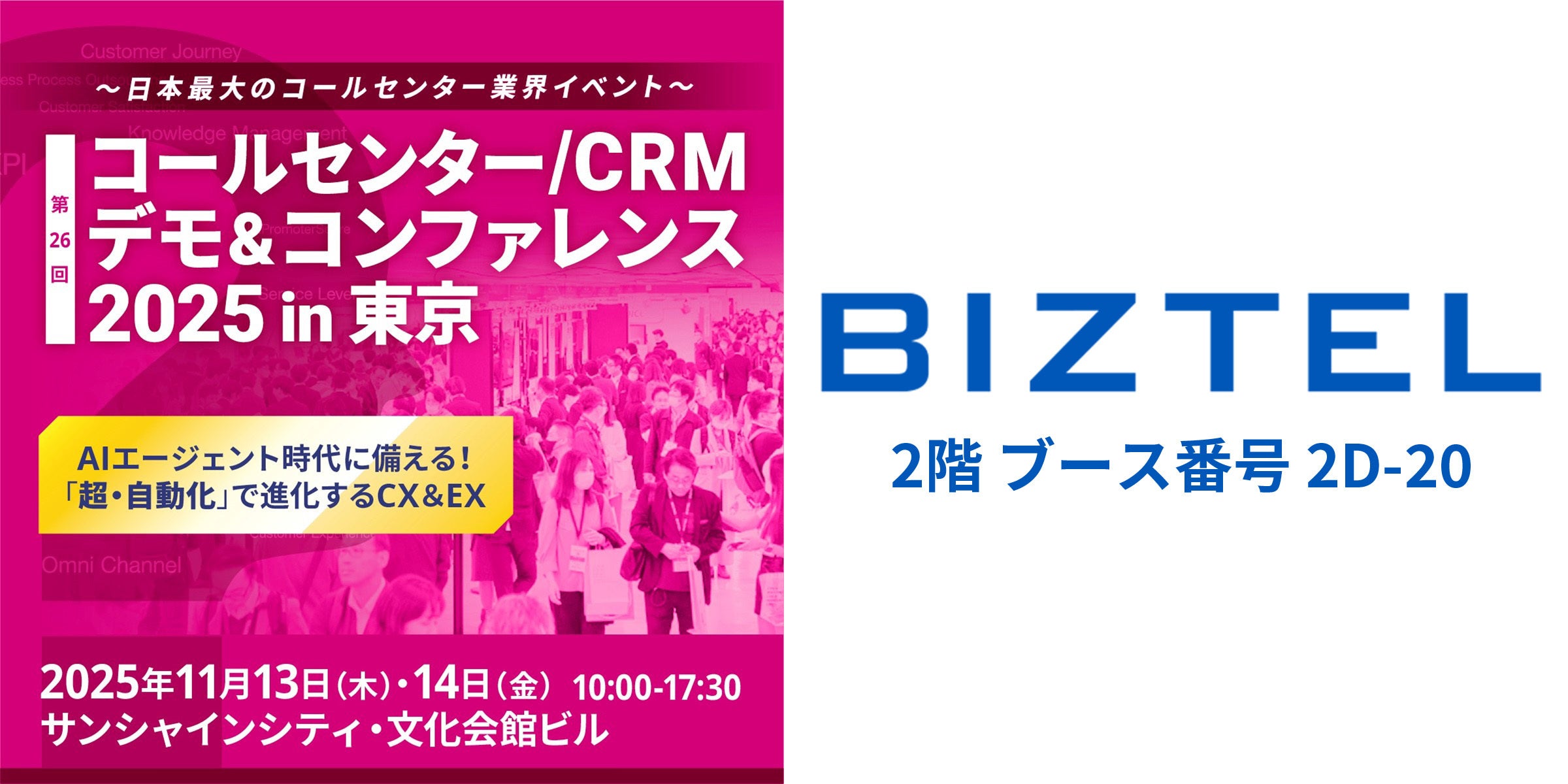 8年連続 国内シェア第1位(※1)のクラウド型 CTI /コールセンターシステム「 BIZTEL(ビズテル) 」を展開する株式会社リンク(本社:東京都港区、代表取締役社長:岡田 元治、以下 リンク)は、2025年11月13日(木)・14日(金)に開催される、コールセンター/CS業界向けの日本最大級のイベント「コールセンター/CRM デモ&コンファレンス 2025 in 東京」に出展します。
