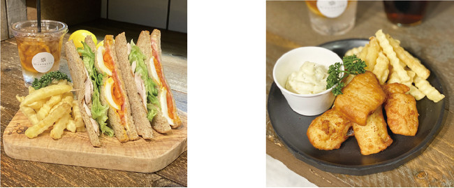 クラブハウスサンドや、フィッシュ&チップスなどを味わいながらイベントを楽しめる。