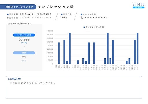 (*):「SINIS for X」に登録直後から本機能をご利用可能ですが、登録後からデータを取得するため数値が空欄の状態でレポート作成されます。
