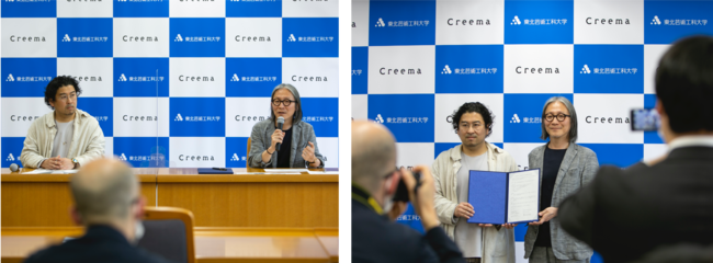 日本最大級のハンドメイドマーケットプレイス「Creema(クリーマ)」を運営する株式会社クリーマ(本社:東京都渋谷区、代表取締役社長:丸林耕太郎、以下クリーマ)と、東北芸術工科大学(山形県山形市、学長:中山ダイスケ氏) は、“ものづくりによる地方創生”を目指し、2022 年4月21日に包括連携協定を締結いたしました。