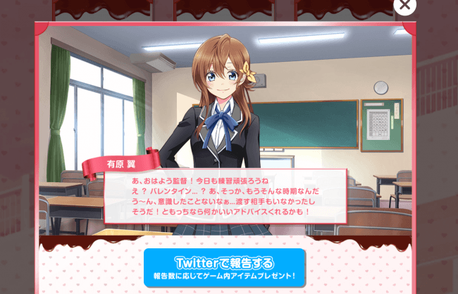 (バレンタイン準備中の選手に会いに行き、Twitterで報告しよう)