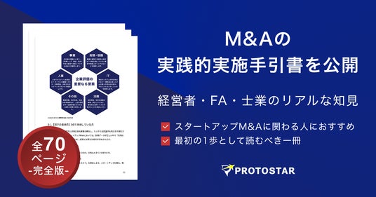 挑戦者支援をミッションに掲げるプロトスター株式会社(本社:東京都中央区、代表取締役:前川英麿)は、約1年半にわたるスタートアップM&A支援プログラム「STARTUP M&A Circulation」を通じて蓄積した知見を体系化した、実践的な「スタートアップM&A実施手引書(全70ページ超)」を公開いたしました。