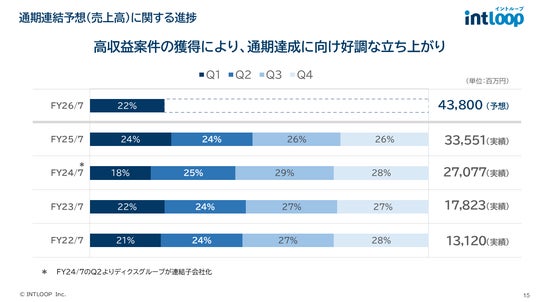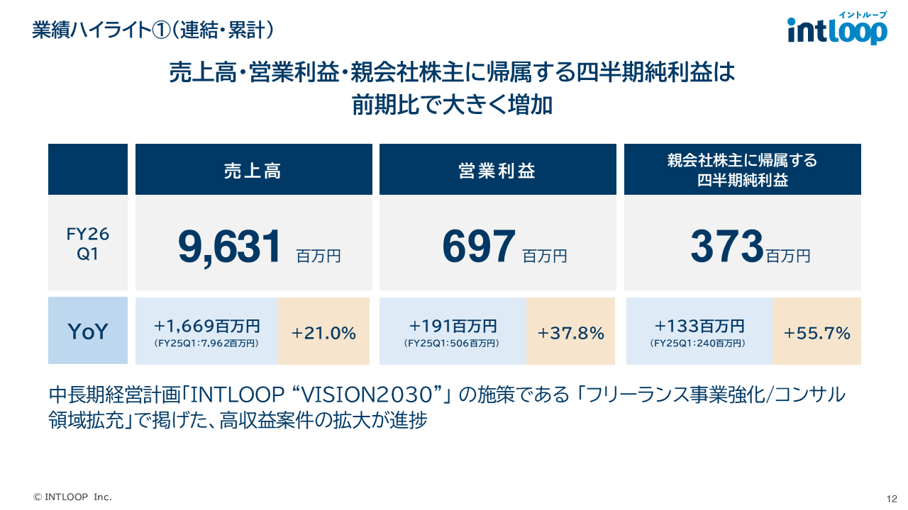 INTLOOP株式会社(本社:東京都港区、代表取締役:林 博文、証券コード:9556、以下「INTLOOP」)は、本日12月12日(金)に2026年7月期 第1四半期決算を発表いたしました。