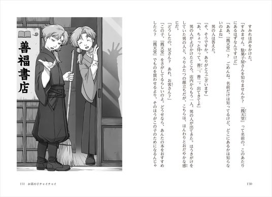 新章「吉凶通り」の第2弾となる最新刊では、銭天堂の近くの「吉凶通り」に「善福書店」が開店。袴に身を包んだ店主の二ツ頭善二(ふたつがしら・ぜんじ)は、その名の通り、善意の人。客の幸せを願って「善(よ)い本」を売ることに一生懸命です。本作では「銭天堂」の駄菓子を買った客がこの「善福書店」を訪れるなど、2つのお店の奇妙な関係が描かれます。
