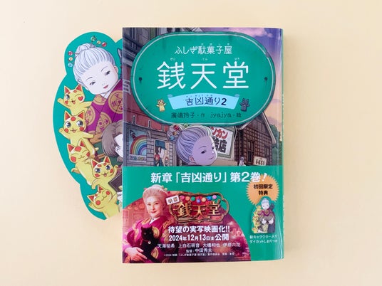 2024年12月13日(金)に待望の実写映画化も控え、ますます注目が高まるシリーズの最新作は、24年4月からスタートした新シリーズ「吉凶通り」の第2弾です! 店主・紅子(べにこ)が切り盛りする、幸運なお客様だけがたどりつけるふしぎな駄菓子屋「銭天堂(ぜにてんどう)」の運命を大きく変える、一軒の書店が開店! 新たな展開がはじまります。