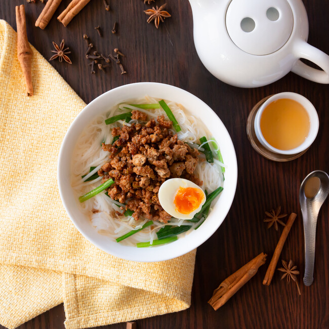 スープとよく馴染むしなやかな食感の汁専用ビーフンを使用。お米のめん特有の「もっちりとした優しい食感」が特徴で、重くならずにサラッと食べられるので、ランチタイムにピッタリです。