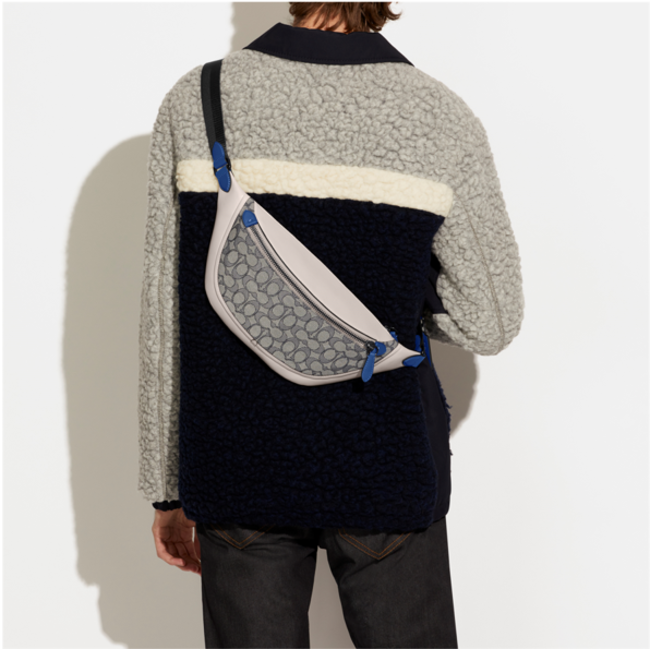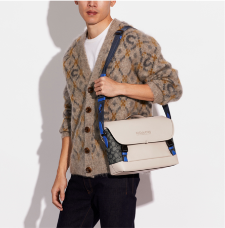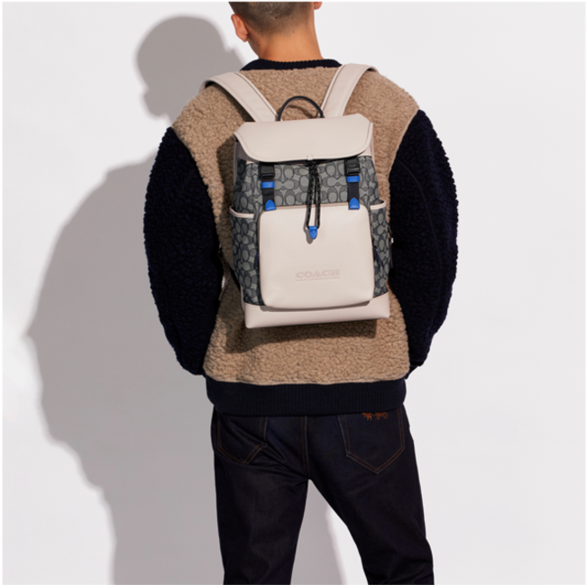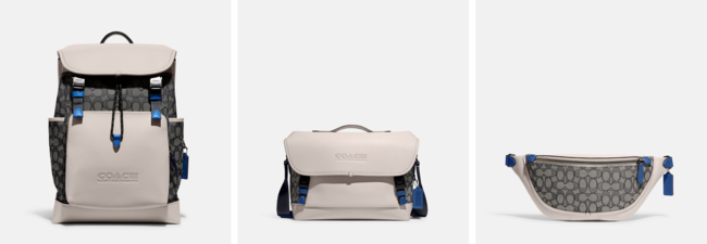 コーチの定番のメンズバッグコレクション “League (リーグ)” に、爽やかなオーシャンブルーカラーのシグネチャー ジャカード素材をミックスした新作が登場しました。 オンオフともに新しいライフスタイルの相棒となるLeagueは、好評のシルエットであるバックパック、バイク バッグ、ベルト バッグの3スタイルが揃います。