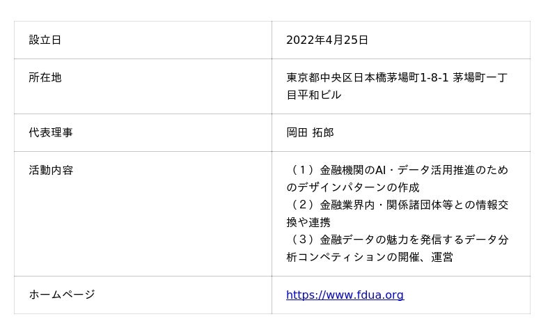 FDUAへの加盟を通じて、当社では設立以来蓄積してきたノウハウを還元し、会員企業の皆様との共創を通じて「安心・安全」を基盤としたビッグデータ・AI活用をリードすることで、今後も金融・保険業界のさらなる発展と課題解決の実現に向けて貢献していきます。