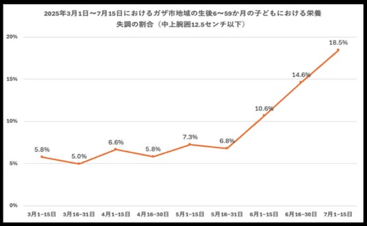 図 1:ガザ市地域の生後6~59か月の子どもにおける栄養失調の割合※2025年8月5日人道外交議連UNRWA清田明宏医師発表資料より