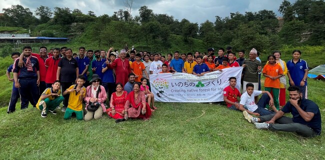 当社は、2019年度からネパール森林管理署の依頼で「チャカンドールコミュニティフォレスト」にて植樹をしています。7月30日に植樹祭を実施し、チャンパカオガタマノキ、アラカシなど9種類の苗木を計2,500本植えました。植樹祭には、現地の中高生と先生、現地の村人など、計152名が参加しました。