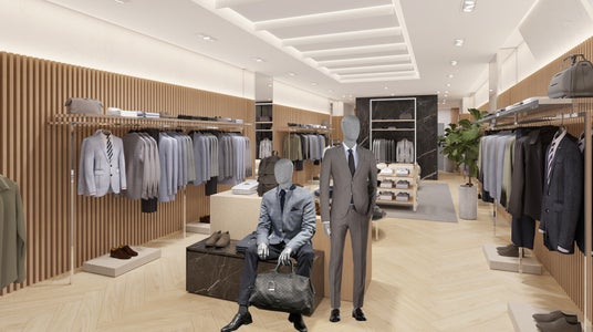 全体的なデザインは、大胆さと現代的な視覚的アプローチを強調しています。開放的なファサードは、店内を直接見渡すことができ、お客様をBOSSの世界へと誘います。店内はエレガントで現代的なデザインが特徴で、次世代のショッピング体験を提供します。店頭には、BOSSの最新キャンペーン動画を映し出すインパクトのある大型LEDファサードが設置されており、温かみのある木製のフローリング、トラバーチン、メタリックシルバーの什器に加え、黒の大理石や光沢のあるマテリアルを組み合わせることでビジュアルアイデンティティが巧みに融合しています。BOSSの世界に浸りながら、魅力的な環境でショッピングをお楽しみいただけます。