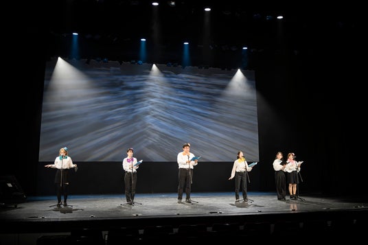 この度、舞台芸術コース(身体表現専攻、舞台制作専攻)、声優コース、ポピュラーダンスコースが合同で卒業公演を実施し、本学では初の試みとなりました。本公演のサブタイトルである【Our Stage, Our Story】には「それぞれのコースの物語を、同じ舞台で共に描こう」という意味が込められています。