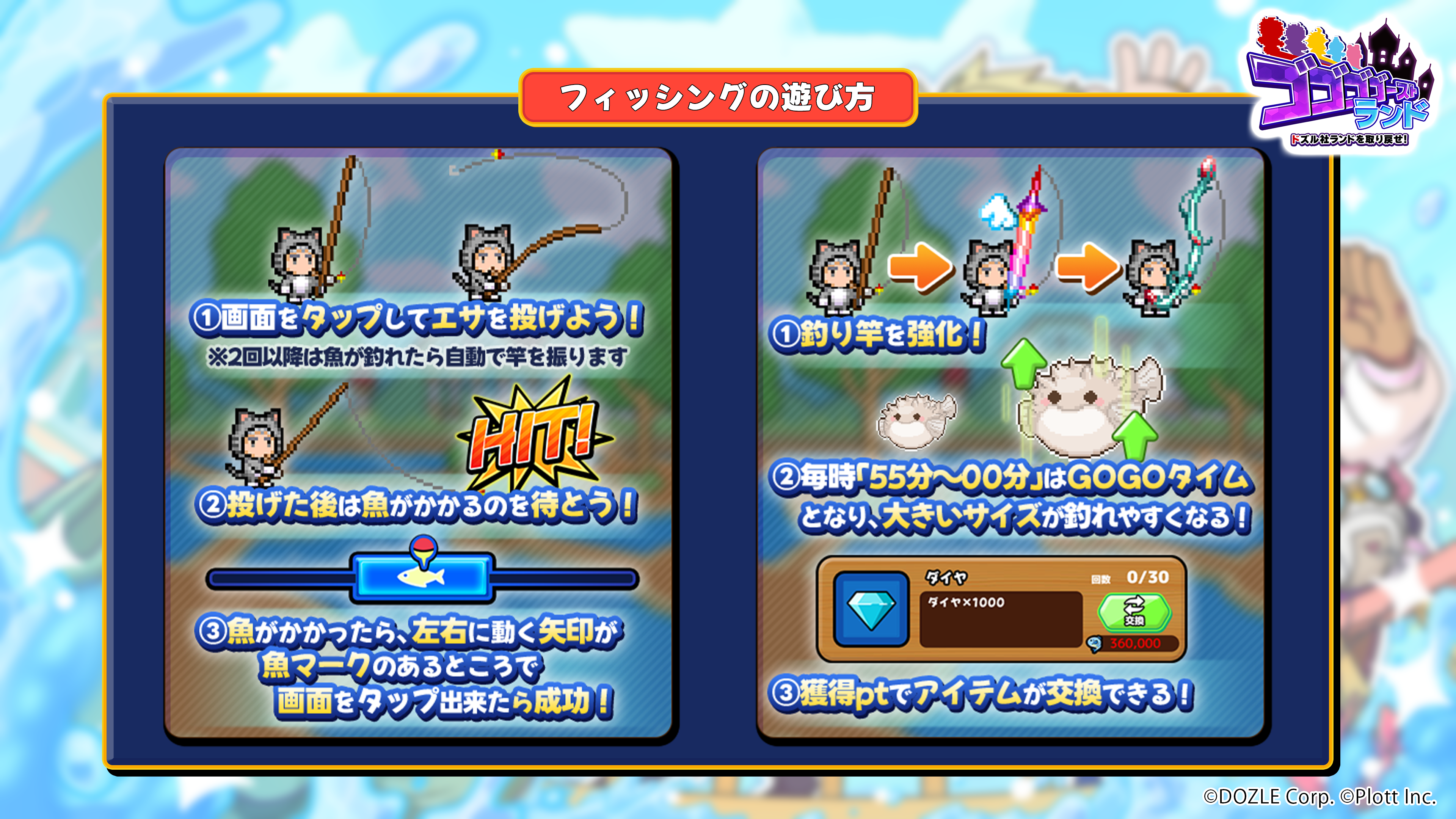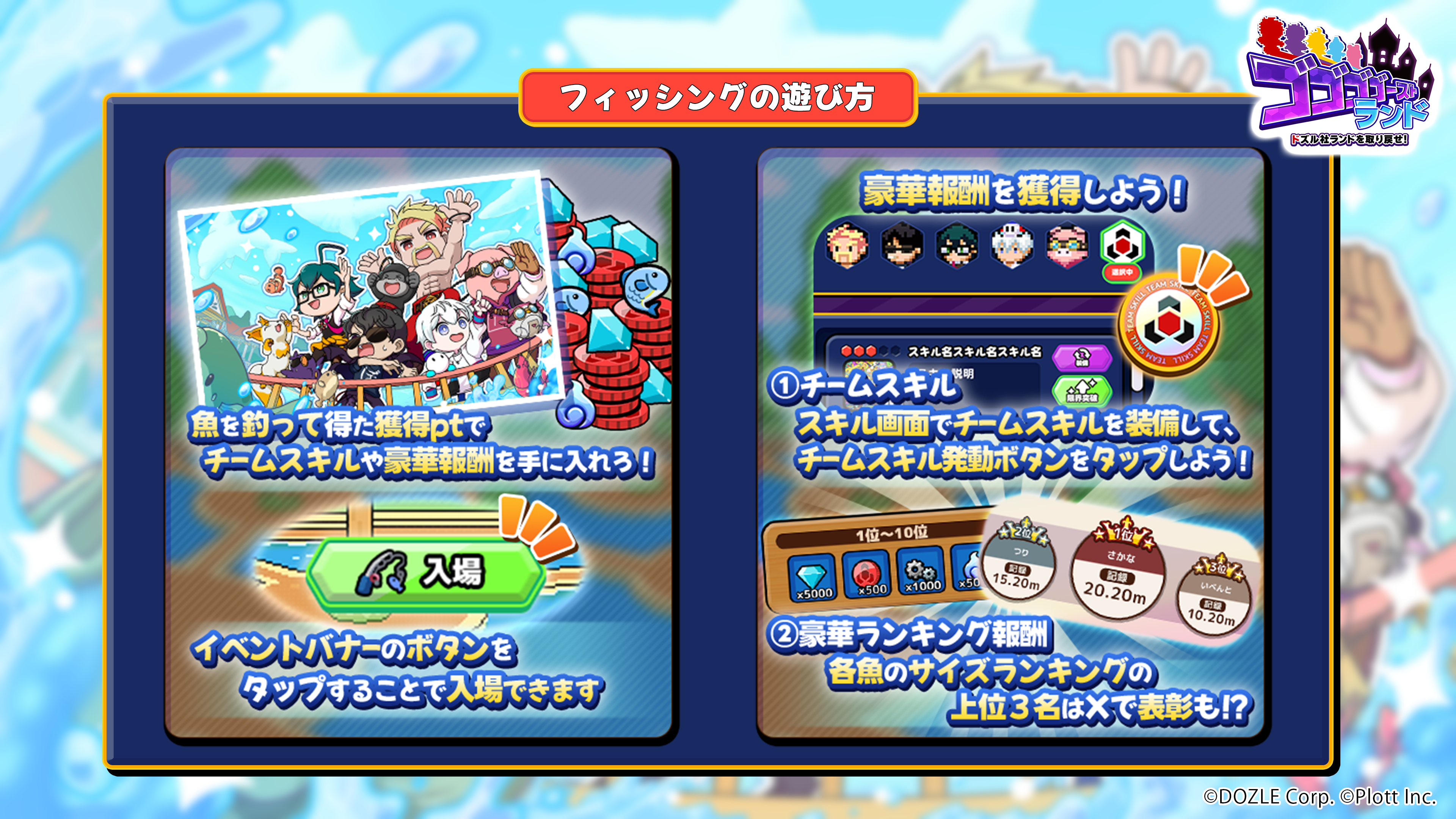 IPコンテンツの企画・制作・ビジネス展開を行う株式会社Plott(本社:東京都千代田区、代表取締役:奥野翔太、以下 「Plott」)は、Plott Gamesが運営する『ゴゴゴゴーストランド | ドズル社ランドを取り戻せ!』にて、ゲーム実況グループ「ドズル社」が行う「ドズル社ランド フィッシング」と連動したイベント「フィッシングinゴゴゴゴーストランド」を期間限定で開催することをお知らせいたします。