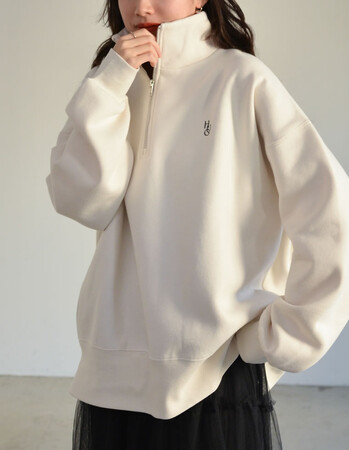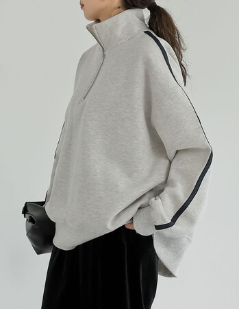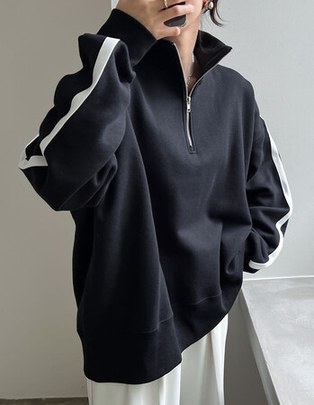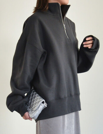 ハーフジップは、ジップの開閉具合で様々な雰囲気を楽しめるのも魅力です。