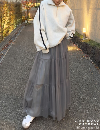 デニムやスラックスなどのパンツスタイルはもちろん、あえて綺麗めなスカートと合わせるのも◎