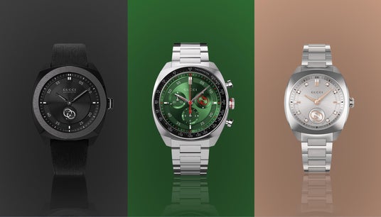 スポーティなラインには、精密さと個性を重視する方に向けて、41mmケースのオートマティック モデル(2種類)と41mmケースのクロノグラフ モデルがあります。クロノグラフ モデルはブラック、ブルー、グリーンの3色で展開され、3つのインダイアルと正確な時間計測のための2つのプッシュボタンを備えています。機能性とエレガントな美しさを兼ね備えたタキメーターで、経過時間を速度に換算することができます。オートマティック モデルには、ブラッシュ仕上げのブルーまたはブラックにPVD加工を施した2種類のケースがあり、スポーティなラバーストラップを組み合わせました。6時位置に配されたブランドを象徴するインターロッキングGモチーフは秒針として機能し、リューズ周りのリングに合わせたカラーで、このコレクションの個性を引き立てます。オートマティックとクロノグラフのどちらのモデルも、スポーティでありながら洗練された魅力を備えたデザインです。