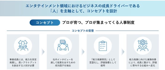 CEグループでは、エンタテインメント領域におけるビジネスの成長ドライバーであるプロフェッショナル人材が、当グループに集まり、育つ土壌を作り上げることで、事業競争力を高め、グループ全体の更なる発展を目指してまいります。