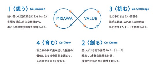 ・企業理念や中長期的な成長を実現するために必要な「MISAWA PURPOSE」「MISAWA VISION」とともに全社員で共有する価値観・行動軸「MISAWA VALUE」を定義