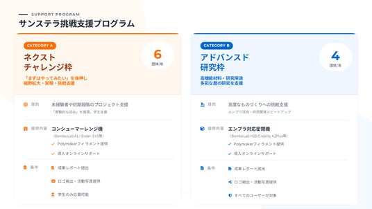 株式会社サンステラ(本社:東京都)は、3Dプリンターを活用したものづくり・研究・挑戦を支援する新制度「サンステラ挑戦支援プログラム」を開始いたします。
