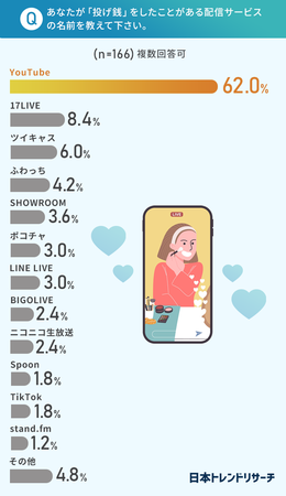 どの配信サービスで投げ銭をしたことがあるかについても聞きました。