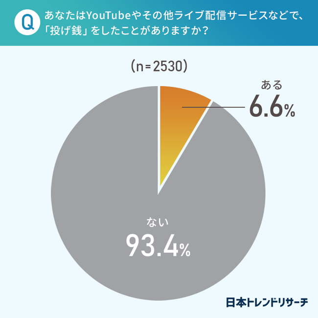 まずは、YouTubeやライブ配信サービスなどで「投げ銭」をしたことがあるか聞きました。