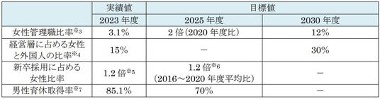 ■女性活躍推進に関する目標値と主な制度や取り組み