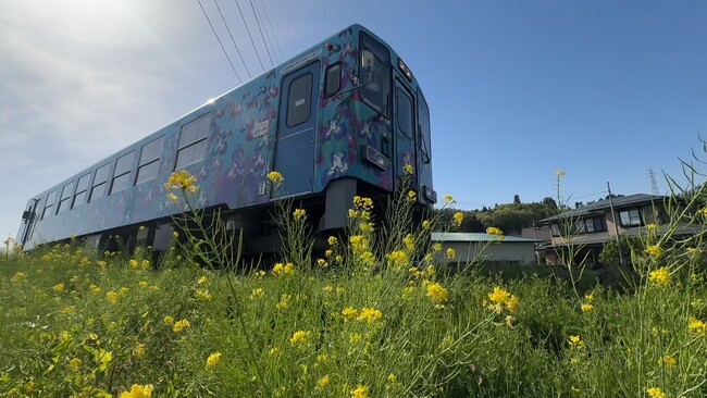 三山さんが今回、旅する路線は、南部置賜地方を走るローカル線のフラワー長井線。沿線では季節によって桜や菜の花、あやめ、あじさいなどが楽しめる、その名の通り、花と関係性が深い路線だ。車両のデザインも華やか。桜や紅花、ダリア、あやめなど、色とりどりのラッピング車両が、長旅の疲れを癒やしてくれる。