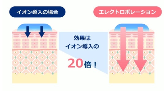エレクトロポレーション脱毛とは、特殊な電気の力で皮膚表面に一時的に隙間をあけ、角質層までの通り道を作ります。施術時にジェルを塗布し、機械をあてることで、脱毛と同時にヒアルロン酸・コラーゲンを含む29種類の美容成分を肌に浸透させることができます。イオン導入やメソセラピーよりも高い効果を発揮し、痛みやダウンタイムはございません。