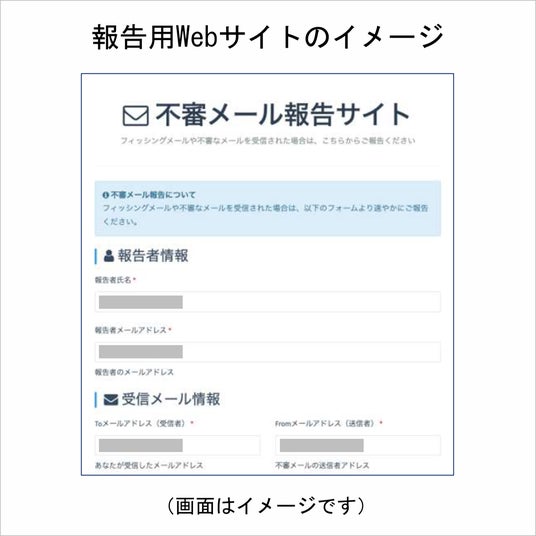 メール受信者は、標的型メールの情報を専用のWebサイトに登録するか、メールに添付・送信して報告できます。