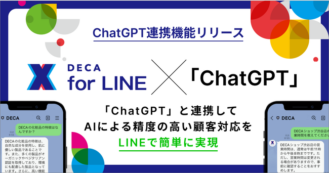 「DECA for LINE」は、ChatGPTと連携することで顧客からの問い合わせに対して正確な回答を自動で返答するチャットボットをLINEやWebサイトなど様々なチャネルで提供可能です。
