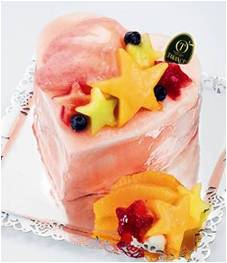 かわいらしいピンクのハートケーキに流れ星をイメージして旬のフルーツを彩りよく飾った七夕限定ケーキ。