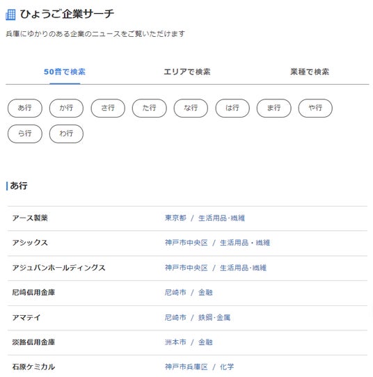 主要190社の情報ひとまとめに 「ひょうご企業サーチ」スタート