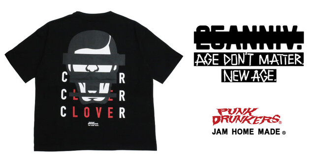 今回ブランド25周年を迎えるにあたり、JAM HOME MADEと旧知の間柄であり、同じく25周年を迎える『PUNK DRUNKERS』とのコラボレーション「“あいつ”Tシャツ」を制作しました。