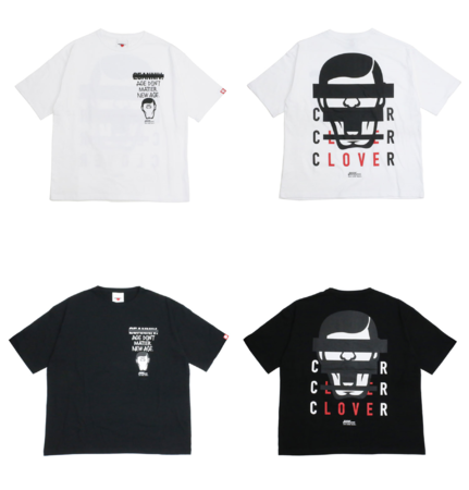 「そもそも『愛』は目には見えないモノ」という表現として、その「LOVE=愛(アイ)」を目隠し黒目線の ■■■■(黒いバー=黒バー)で隠したビジュアルデザイン。今回のTシャツでは、目隠し黒目線で隠されているのは“あいつ”のEYE(アイ=愛)と、“あいつ”の背面にレイヤードされている「CLOVER」の真ん中に隠された「LOVE=愛」の2種類の“愛”が隠されています。